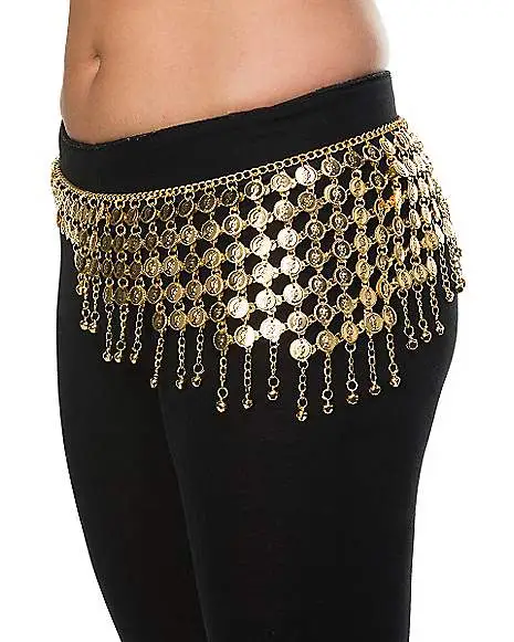 Strike gold when you wear this fortune teller coin belt! Shimmy and shake your way through mysterious adventures of the mind when you wear this metallic gold disc skirt.