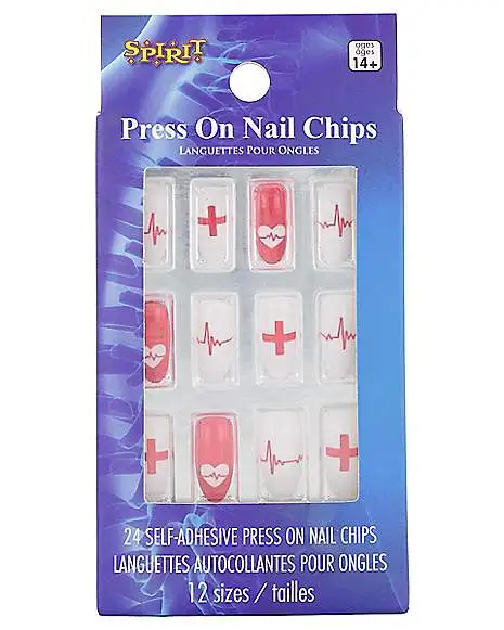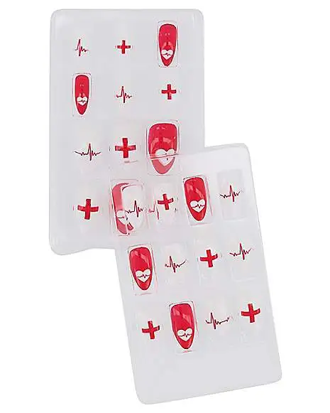 Complete your nurse costume with these red and white nurse press-on nails!