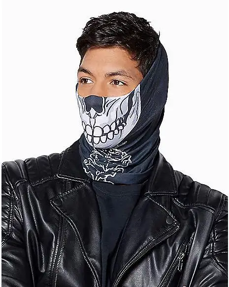 Cover up, stay warm, look cool. Those three steps are made easy with this skull bandana!