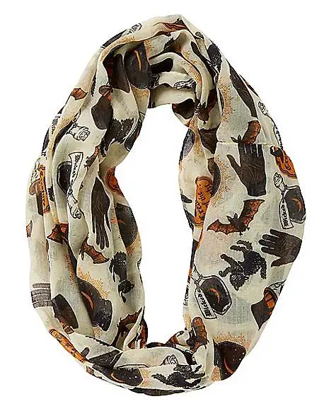 Everyday is Halloween when you add this circular scarf to your look. Featuring bats, skeletons, potions and more, you’ll always be dressed for a spooky time.